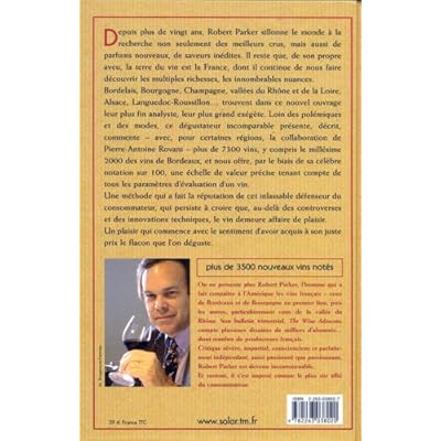Depuis plus de vingt ans, Robert Parker sillonne le monde à la recherche non seulement des meilleurs crus, mais aussi de parfums nouveaux, de saveurs inédites. Il reste que, de son propre aveu, la terre du vin est la France, dont il continue de nous fairedécouvrir les multiples richesses, les innombrables nuances. Bordelais, Bourgogne, Champagne, vallées du Rhône et de la Loire, Alsace, Languedoc-Roussillon... trouvent dans ce nouvel ouvrage leur plus fin analyste, leur plus grand exégète. Loin des polémiques et des modes, ce dégustateur incomparable présente, décrit, commente - avec, pour certaines régions, la collaboration de Pierre-Antoine Rovani - plus de 7300 vins, y compris le millésime 2000 des vins de Bordeaux, et nous offre, par le biais de sa célèbre notation sur 100, une échelle de valeur précise tenant compte de tous les paramètres d'évaluation d'un vin. Une méthode qui a fait la réputation de cet inlassable défenseur duconsommateur, qui persiste à croire que, au-delà des controverses et des innovations techniques, le vin demeure affaire de plaisir. Un plaisir qui commence avec le sentiment d'avoir acquis à son juste prix le flacon que l'on déguste. Plus de 3500 nouveaux vins notés.